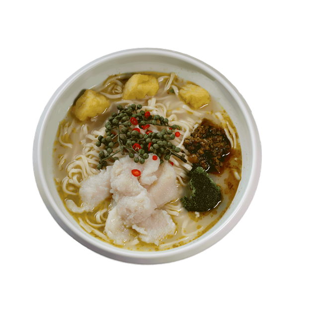 藤椒魚面制作方法:1.豬骨濃湯底料13克,開水400克調(diào)好備用;西蘭花煮熟待用;2.生面煮3分鐘至熟撈出加入碗中;3.調(diào)好的骨湯400克,加入藤椒風味底料20克,腌制魚片、油豆腐,一起煮熟倒入碗中,加上輔料、蔥花即可。